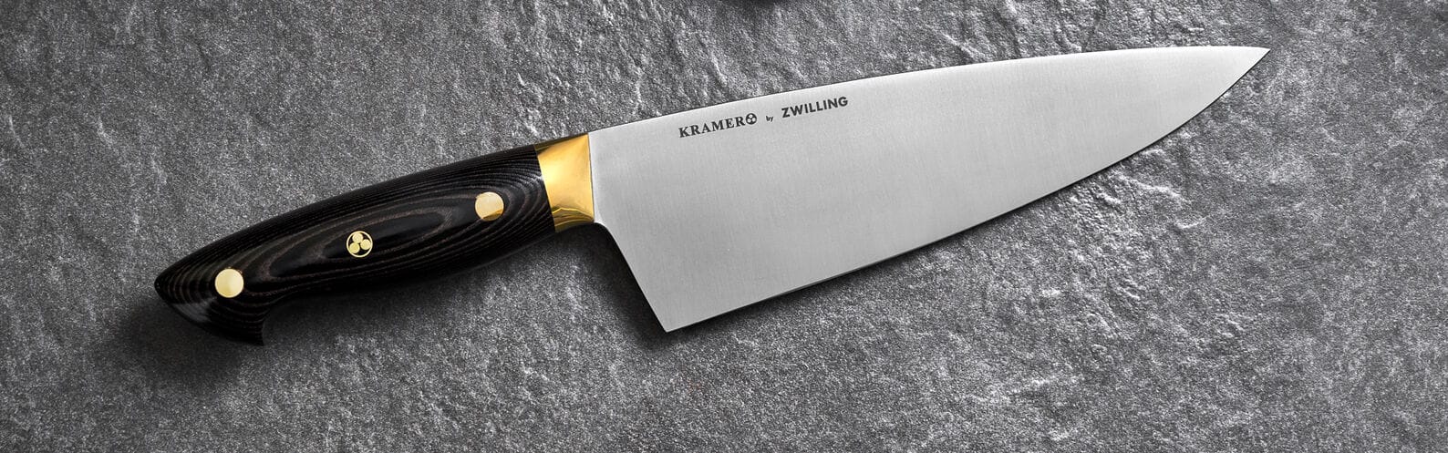We begin with the most ancient tool. Forged from straight carbon steel by a Master Bladesmith, the Kramer doesn't just cut, it separates matter. Unlike sterile stainless steel, this blade is alive. It develops a deep, blue-grey patina over time, a visual record of every meal you have prepared. It demands care, but in return, it offers a connection to the craft that a factory-made knife simply cannot match.
